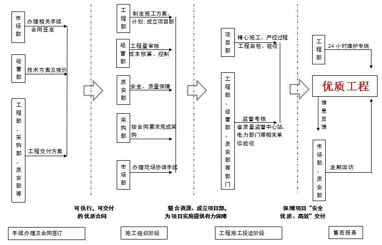 服務管理以"安全為基、效率為先、客戶為本"為三大支柱,構建覆蓋公司項目全生命周期的服務體系。
